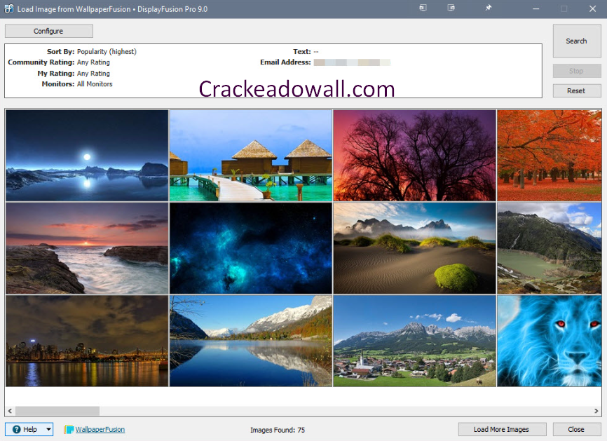 - Gerenciamento avançado de papéis de parede da área de trabalho: o DisplayFusion se destaca na personalização visual. Ele pode buscar automaticamente papéis de parede de alta qualidade de fontes online como Bing, Reddit e DeviantArt. Os usuários podem definir imagens diferentes para cada monitor. Distribuir uma única imagem em todas as telas com ferramentas de alinhamento de precisão ou criar listas de reprodução sofisticadas de papéis de parede para vários monitores. Que podem ser alternadas conforme uma programação.